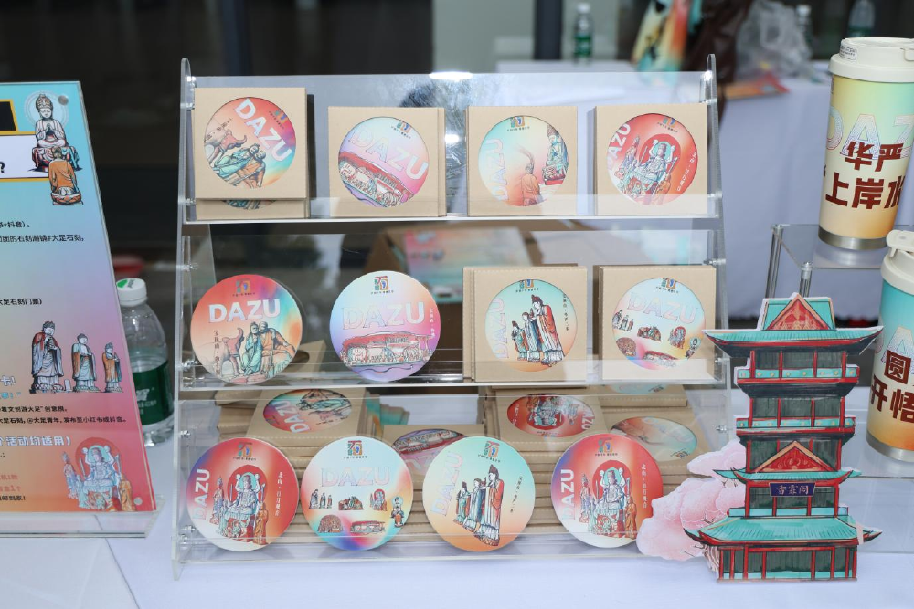 “团团的石刻潮铺”文创快闪店是本次活动的一大亮点。作为团大足区委打造的文化传播新载体,潮铺聚焦大足石刻优质IP,首发五大品类近20款文创产品,涵盖随行杯、托特包、书签、明信片等实用物件。现场还发起“我最喜欢的大足文创投票”活动,广泛收集青年意见,为文创产品后续开发提供参考。