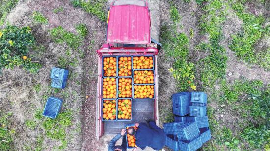 ▲近日,大足区中敖镇,果农正在采摘和分拣脐橙。
