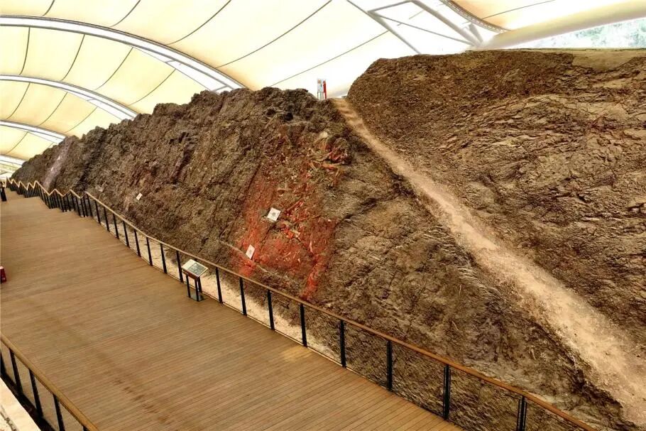 想触摸侏罗纪的脉搏?云阳恐龙化石遗址馆里有世界上单体最大的侏罗纪恐龙化石,墙长150米、高6米~10米,墙体上镶嵌着5000余块恐龙化石——蜥脚型类的巨椎、兽脚类的利齿、鸟脚类的足印,甚至剑龙类的骨板皆清晰可见。