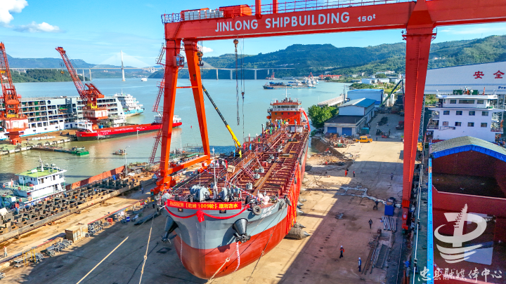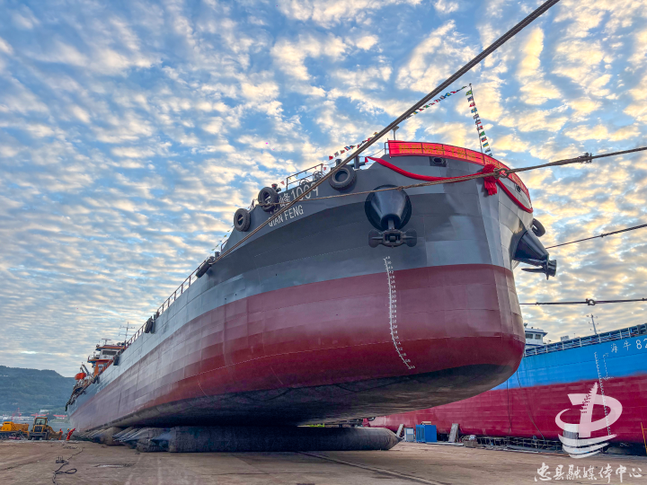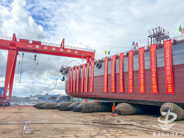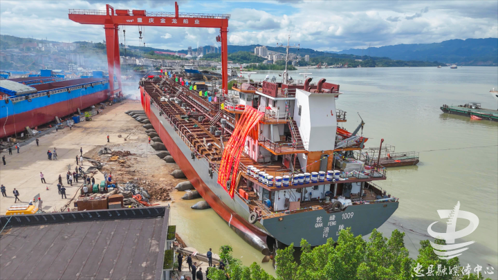 10月22日上午,重庆金龙船业建造的首艘新能源甲醇、柴油双燃料化学品船“乾峰1009”轮成功下水。