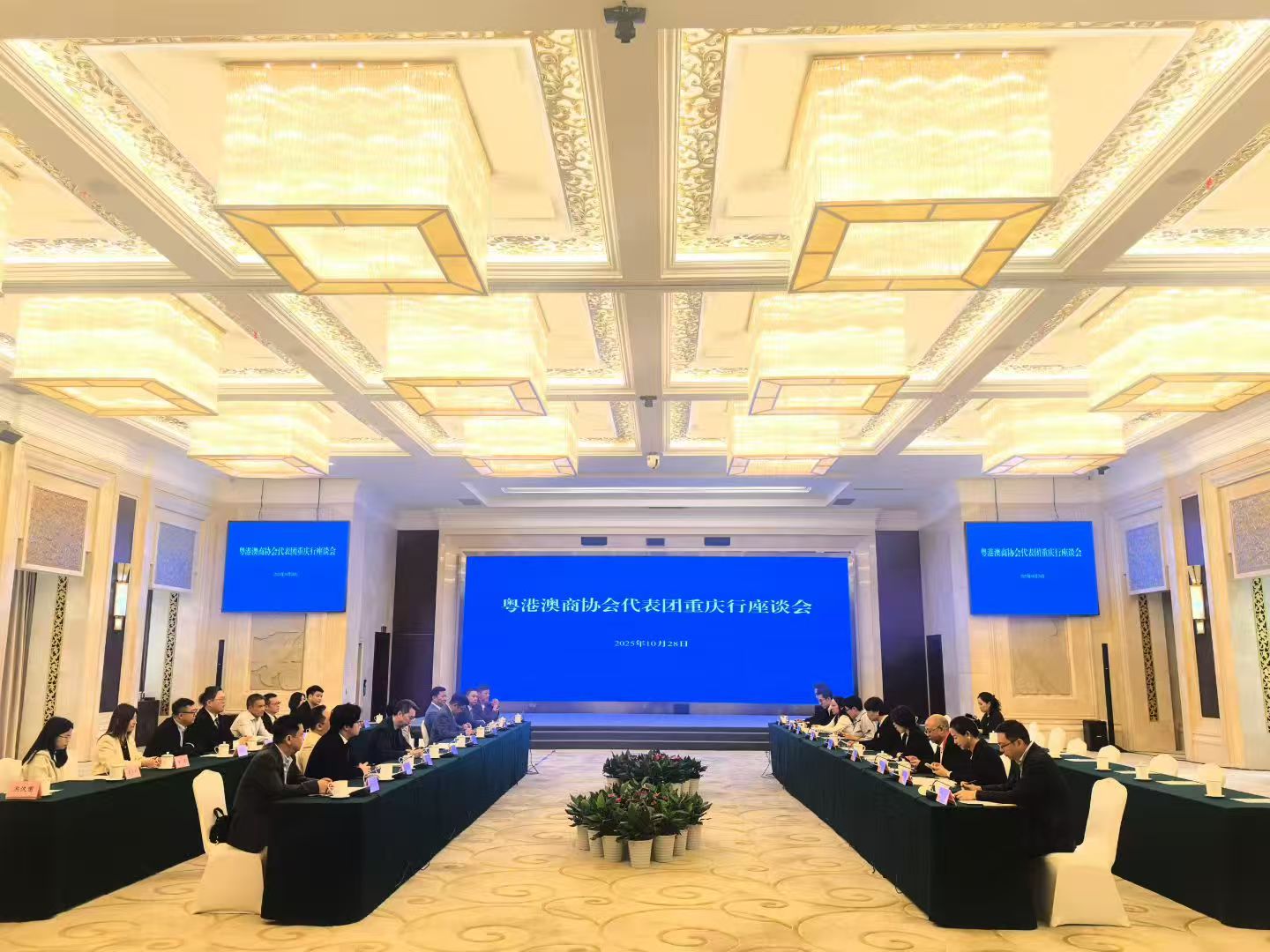 10月28日,粤港澳大湾区商业联合会总会会长李炜率代表团访渝,与市政府新闻办、市商务委、市政府港澳办等市级部门以及香港贸易发展局重庆代表处、香港大公文汇传媒集团重庆记者站、重庆市香港企业家联谊会等在渝香港机构座谈交流。市政府港澳办副主任张娅茜、香港贸易发展局重庆代表王楠出席座谈会并致辞,各方围绕产业合作潜力、资源互补优势等议题开展深入交流。