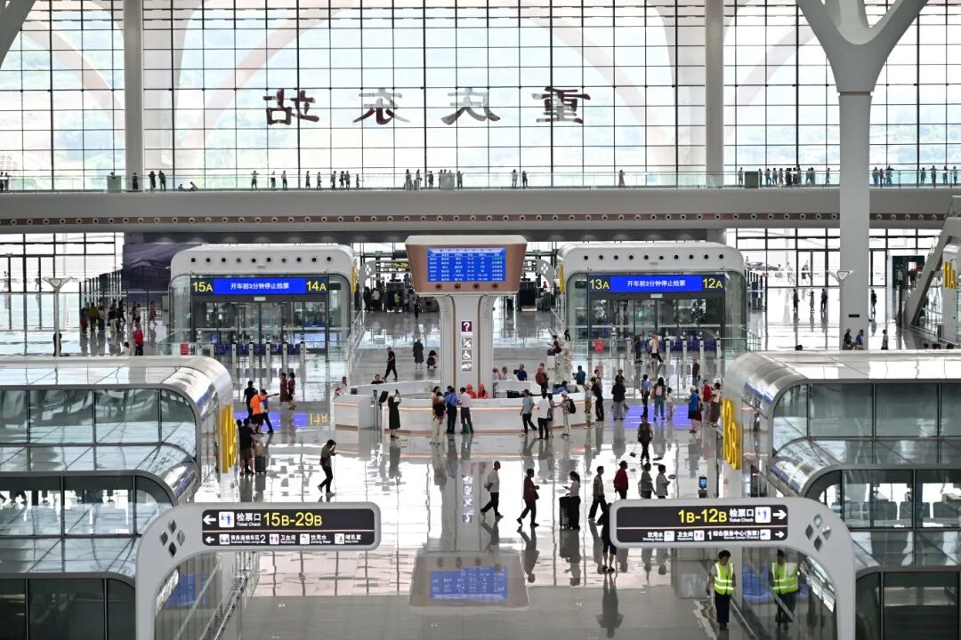 “双节”期间,重庆东站铁路运输持续高位运行,累计到发高铁列车374列,累计到发旅客总量达19.61万人次,日均客流量达到2.45万人次,展现了旺盛的出行需求和东站作为交通枢纽的核心作用。