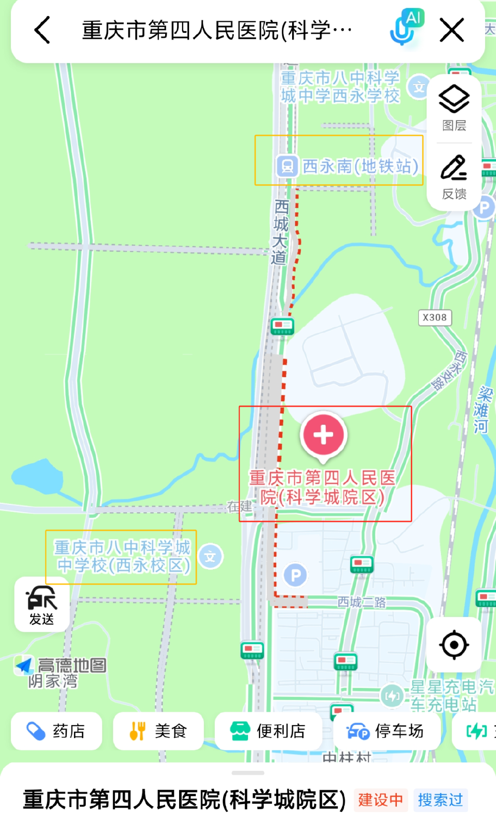 作为市级民生工程,重大附属中心医院科学城院区位于重庆高新区西永街道科学大道旁,与八中科学城中学(在建)斜对相建,还毗邻重庆轨道交通7号线(在建)。这家位于科学大道中轴线上的三甲综合性医院,不仅可以服务周边市民,对于东往北碚、西接江津沿线的市民就诊也有辐射带动作用,因此从地理位置上看十分便捷。