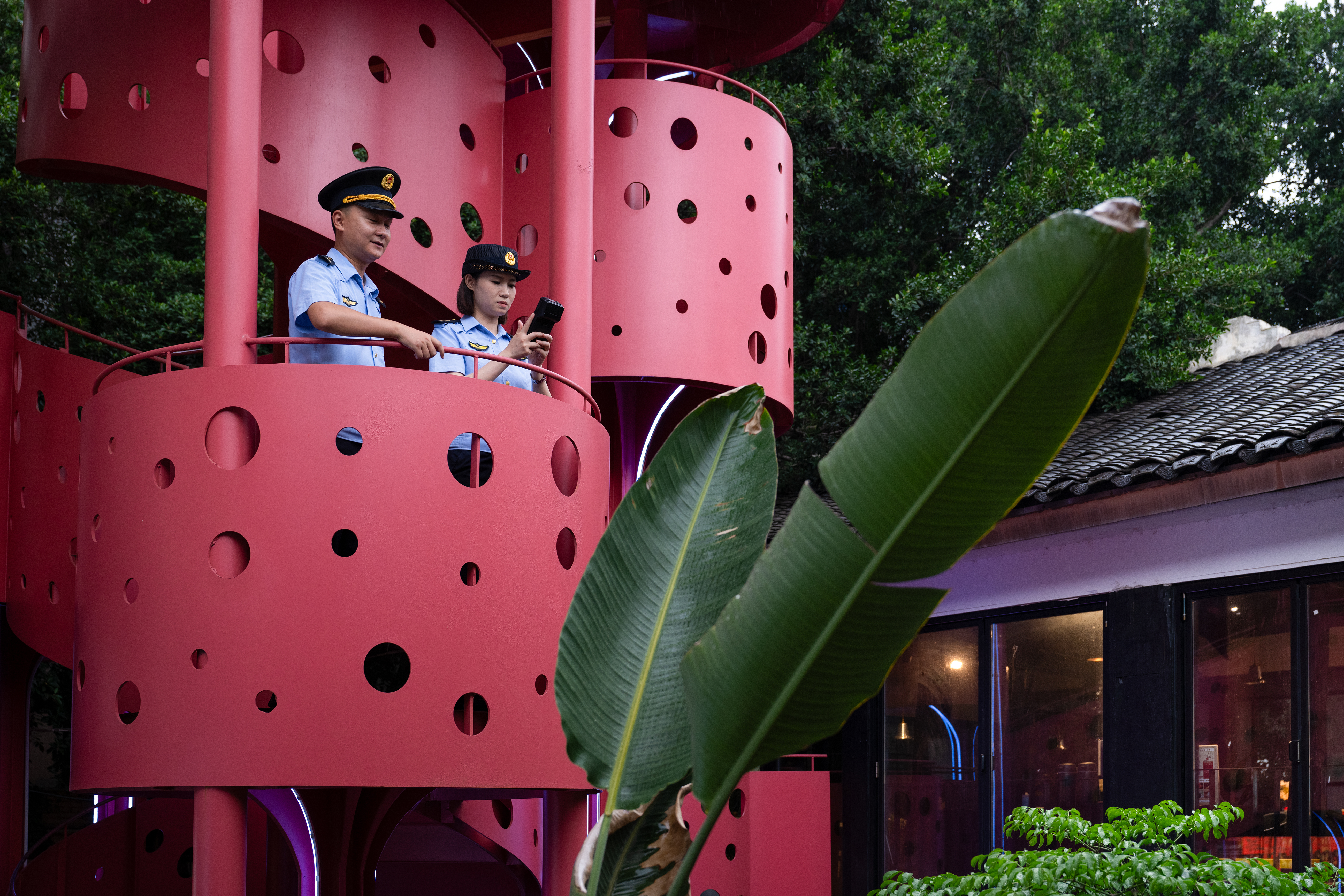 ▲2025年10月17日,沙坪坝磁器口古镇一民宿,磁器口街道综合行政执法队员对照“综合查一次”清单,逐项进行核查。记者 张春晓 摄