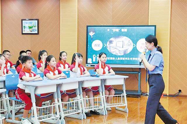 青少年是法治中国建设的未来和希望。重庆构建覆盖3000余所中小学的法治教育体系,法治副校长配备率100%,推动法治教育融入日常教学;“莎姐”法治精品网课播放量超6500万次;27个青少年法治教育实践共享场馆年均接待超10万人次,实现法治教育从课堂到实践的闭环。