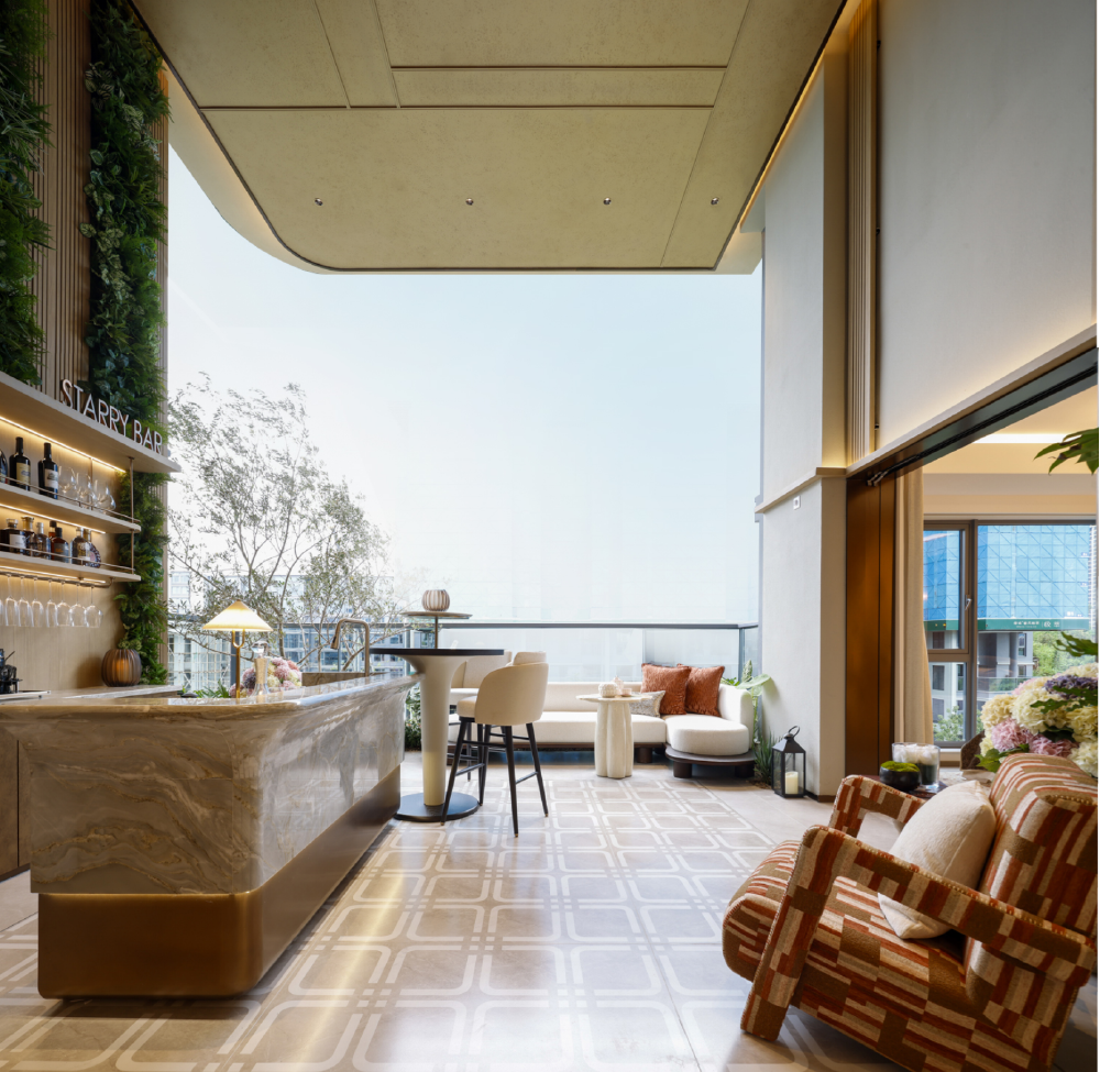 在空间设计上,项目通过约6米挑高、空中院墅式布局,优化了居住动线与视觉体验,解决了传统四代住宅常见的对视问题。同时,社区归家系统亦融合艺术与功能,从恢宏大门、双层海派大堂到艺术化车库光厅,营造出兼具仪式感与实用性的归家动线。