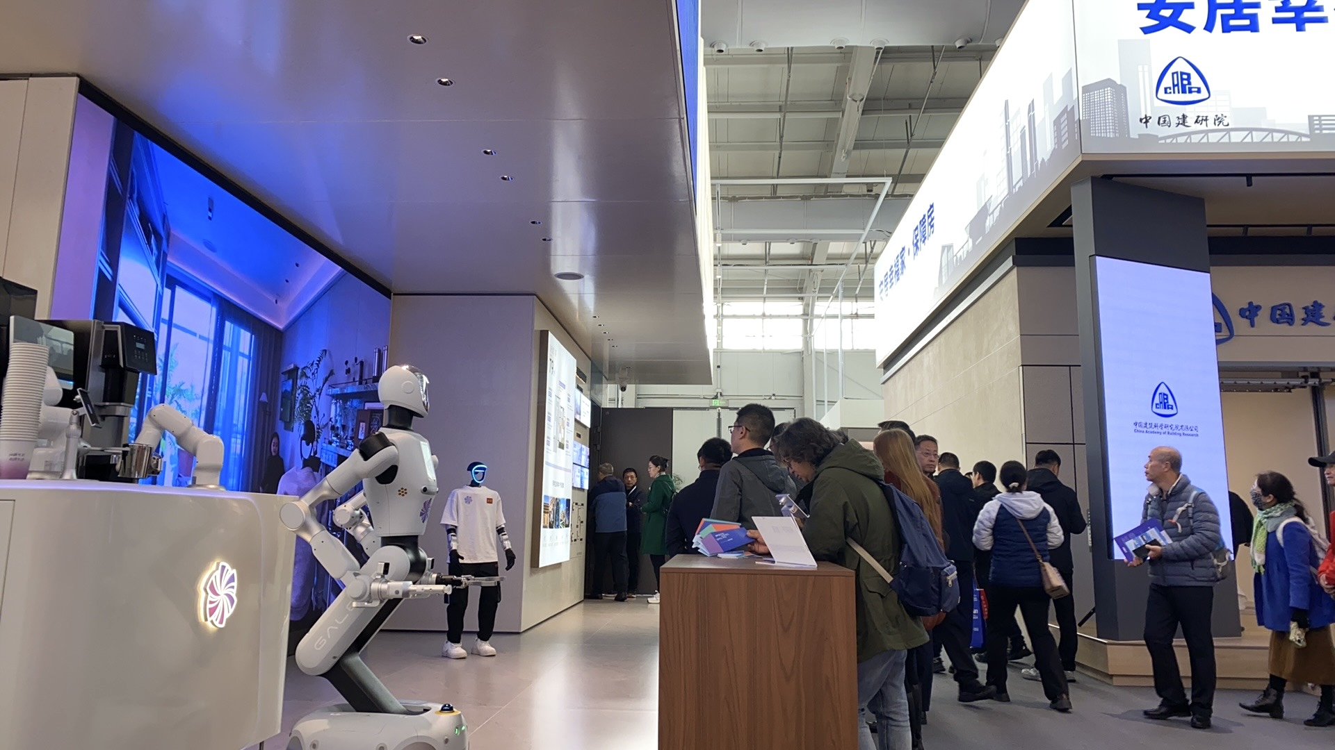 走近样板间,咖啡机器人提供丝滑服务——线上下单、机器臂制作、机器人端送。人形机器人导览讲解,一声“联小智”即可开启全屋灯光、家电及可变空间,科技感十足。