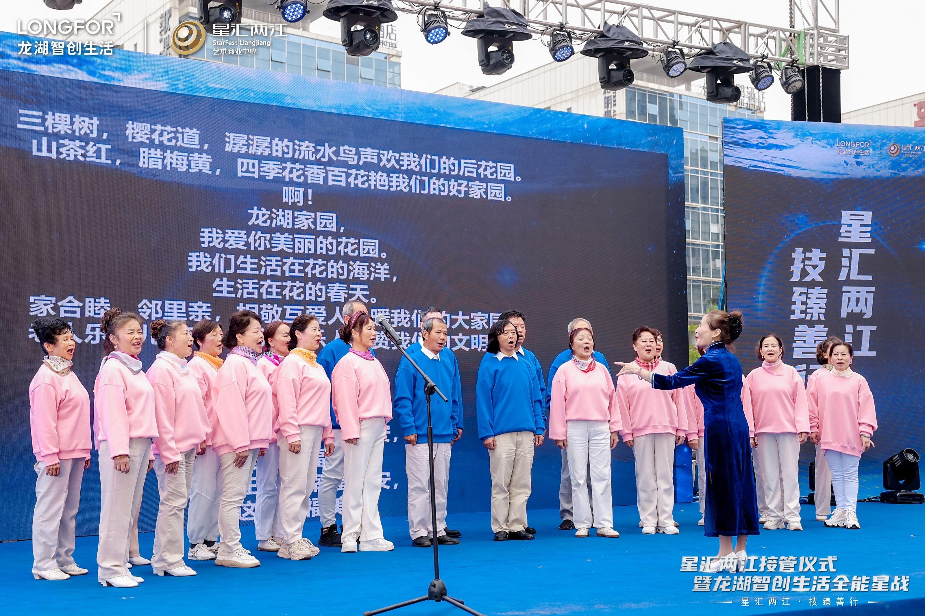 值得一提的是,“业主物业一家亲”的温情环节,成为本次活动最动人的篇章。活动中,来自郦江拾光艺术合唱团的业主们身着统一服装,登台演唱原创歌曲《龙湖家园美》,悠扬的旋律中满含对家园的热爱。业主张阿姨在演出后动情地说:“我在龙湖住了十几年,物业人员就像家人一样。去年冬天水管爆裂,工程部小王半夜赶来抢修,在冰冷的水中作业一个多小时毫无怨言,今天能和他们同台演出,特别温暖。”