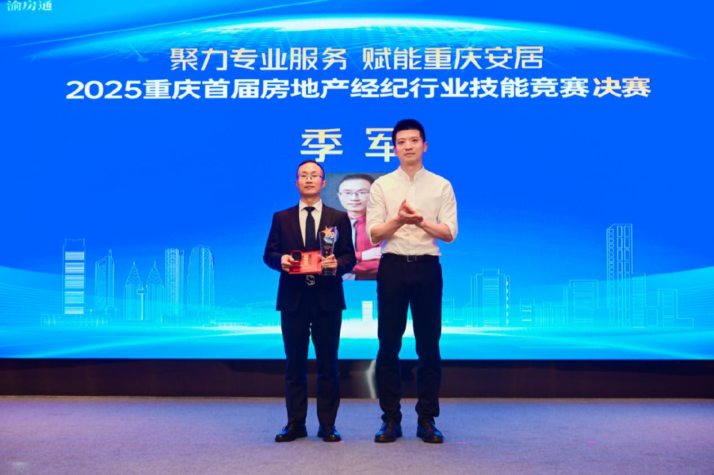 最终,来自重庆房邻居房地产经纪有限公司、重庆到家了网络科技有限公司的选手在2025重庆首届房地产经纪行业技能竞赛中摘得桂冠,黄贤亮、黄章彬、李进分获冠军、亚军、季军。前三甲与陈永建、肖成伟、张良平、王玥、付凤婷、刘坤、李年7名选手获评“2025重庆首届房地产经纪行业技能竞赛十佳金牌经纪人”称号。张雪梅、龚雨寒、瞿昌敏、杨银凤、段咨羽、蔡让琳、周标、黄伟、李红兵、蒲松洋10名选手获得“2025重庆首届房地产经纪行业技能竞赛优秀经纪人”荣誉。