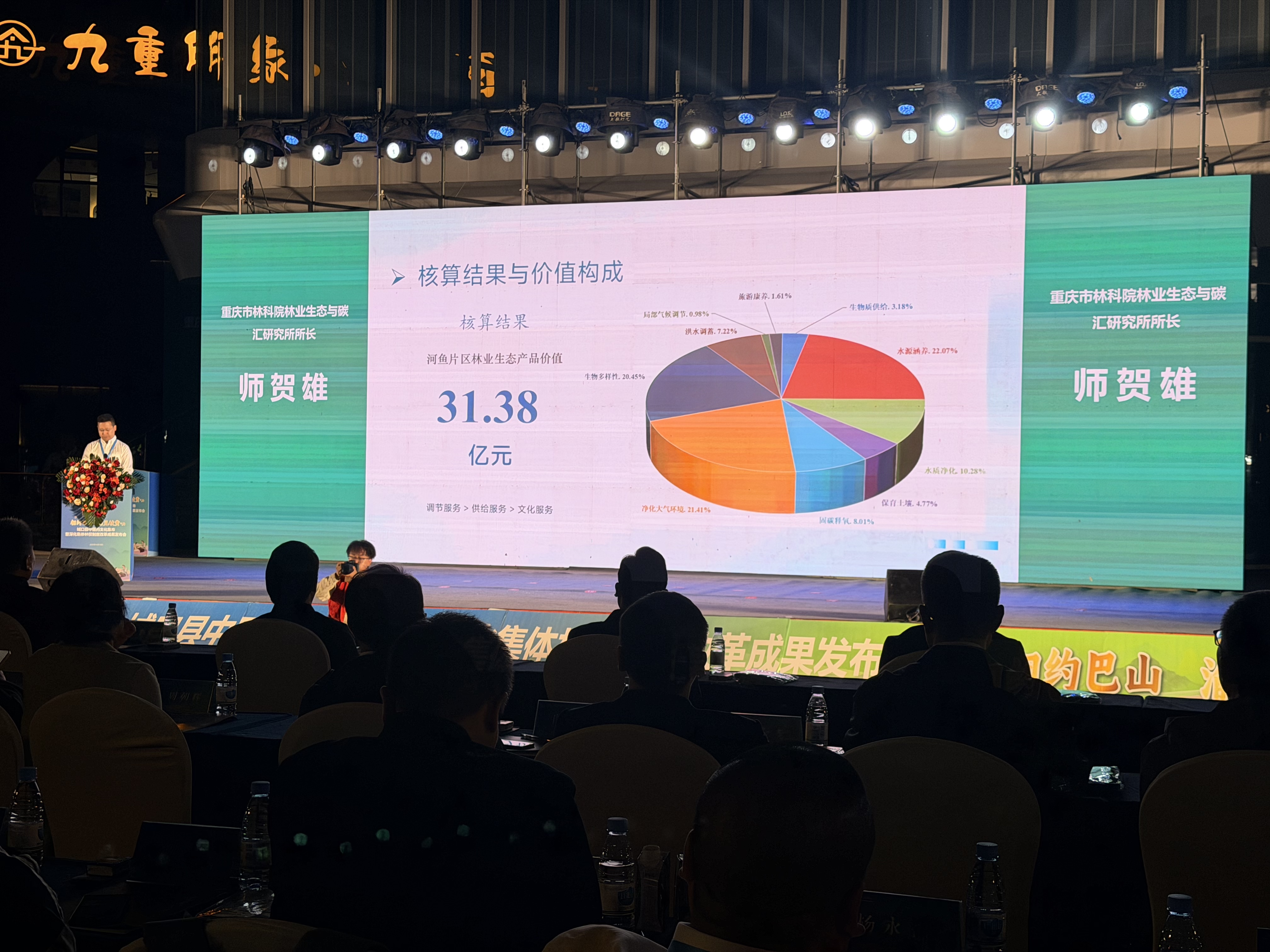 ▲活动现场首次发布了城口县河鱼片区林业生态产品价值核算成果,该片区林业生态产品总值为31.38亿元。记者 刘冲 摄
