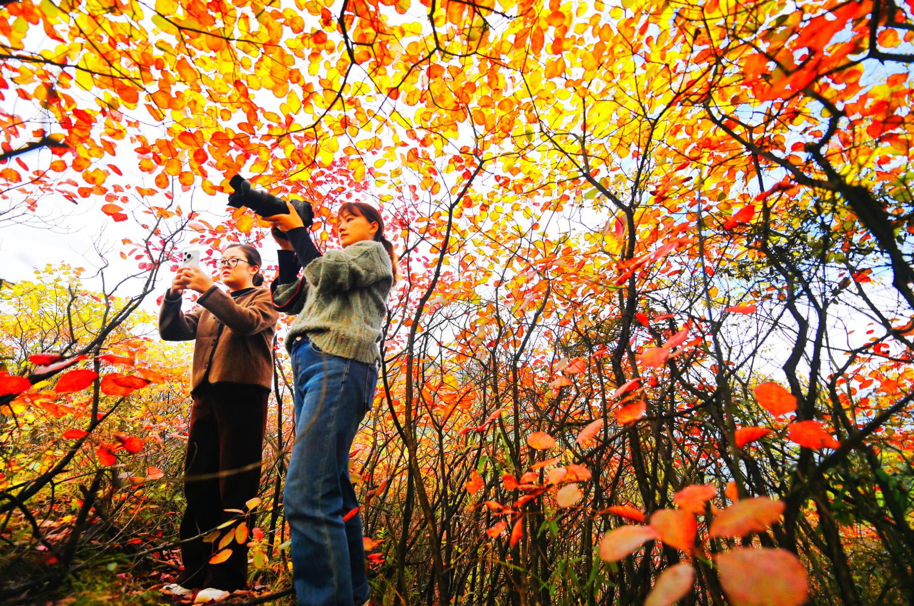 板溪镇山羊村海拔在1000米至1400米,得益于独特的气候与生态环境,每年10月,漫山枫叶、黄栌等树种便会渐次变色,从橙黄到深红层层晕染,将连绵山峦装扮成绚丽多彩的天然画卷。