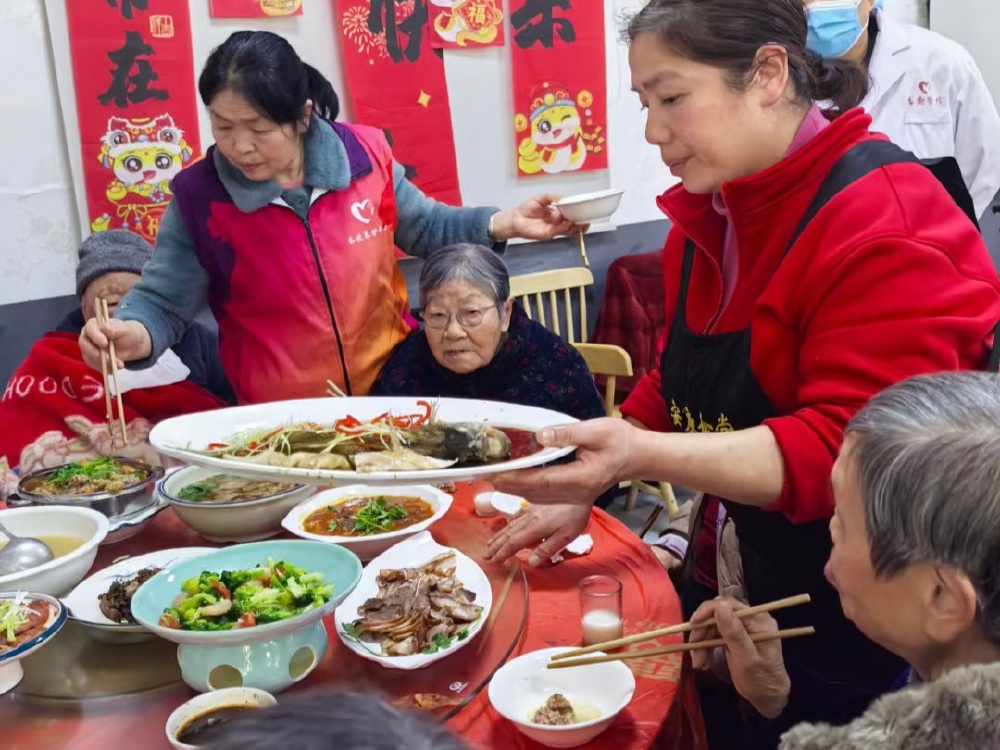 不到一刻钟,社区助老员石爽提着保温袋走了进来,利落地将热气腾腾的包子、鸡蛋和稀饭摆上桌。摸着碗壁传来的温暖,龚婆婆脸上绽开了安心的笑容:“这日子,便当(方便)得很。”