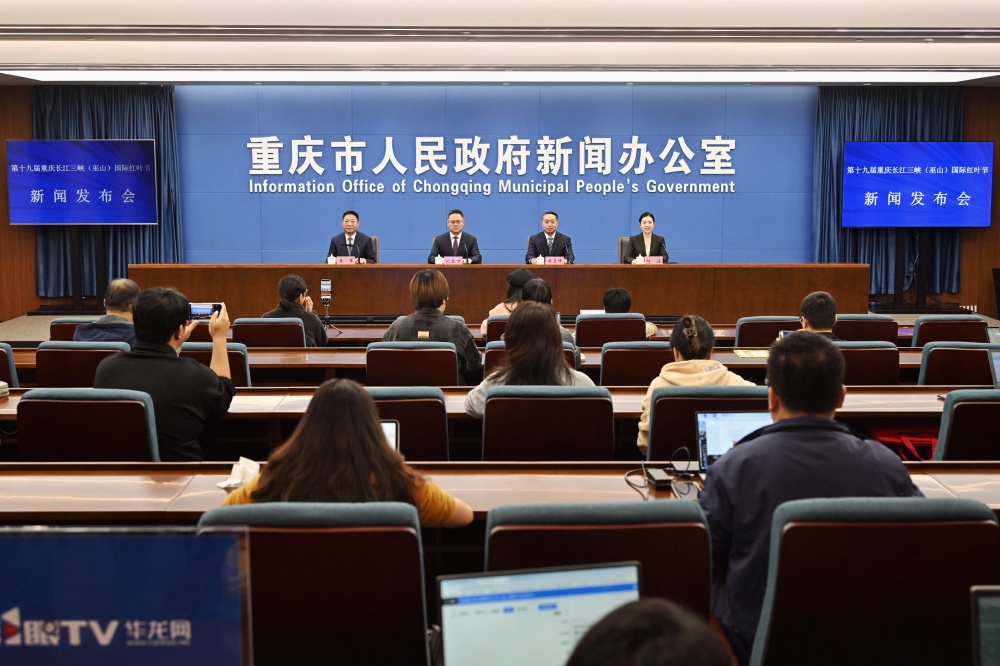 ▲11月13日,重庆新闻发布厅,第十九届重庆长江三峡(巫山)国际红叶节新闻发布会现场。记者 崔力 摄/视觉重庆