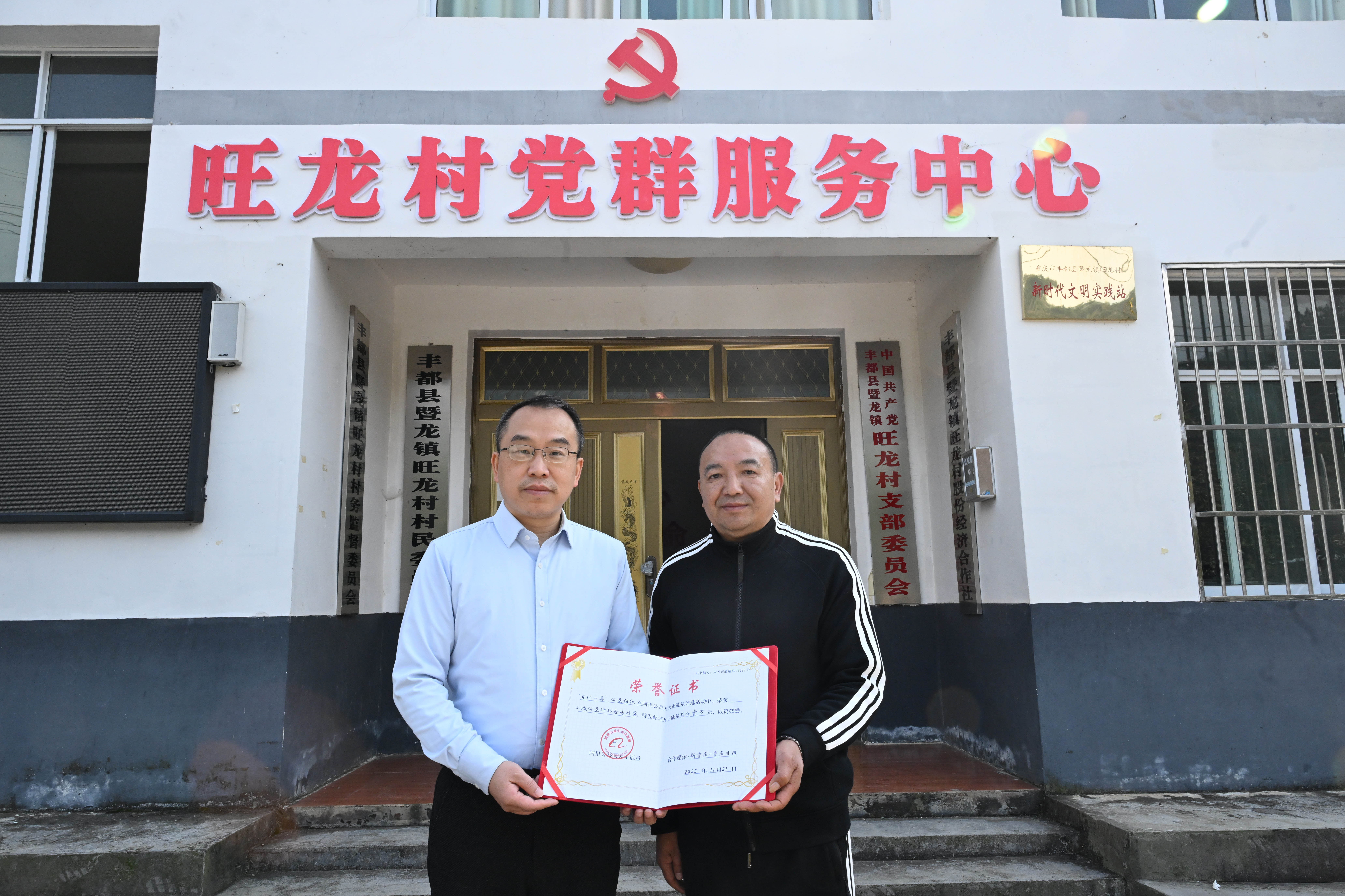 ▲汪碧发(右)收到了阿里公益天天正能量项目、新重庆-重庆日报联合颁发的“小微公益行动者专项奖”证书。记者 罗斌 摄/视觉重庆