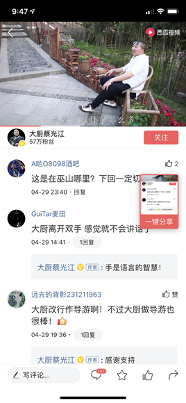 网络达人“大厨蔡光江”打卡“三峡院子”微视频。(网页截图)