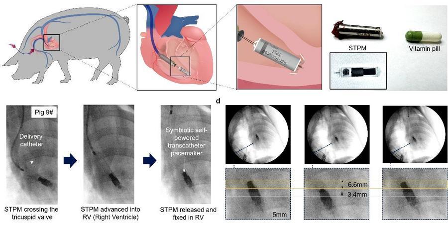 在动物实验中,这款新型起搏器完成了为期一个月的自主运行测试。研究人员表示,实验期间,起搏器能持续实现能量自供给,并稳定发挥起搏治疗功能,有效调控实验动物的心脏节律,充分验证了其临床转化可行性。