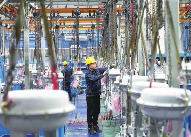 ▲重庆川仪调节阀有限公司的工人在生产车间忙碌 摄/秦廷富