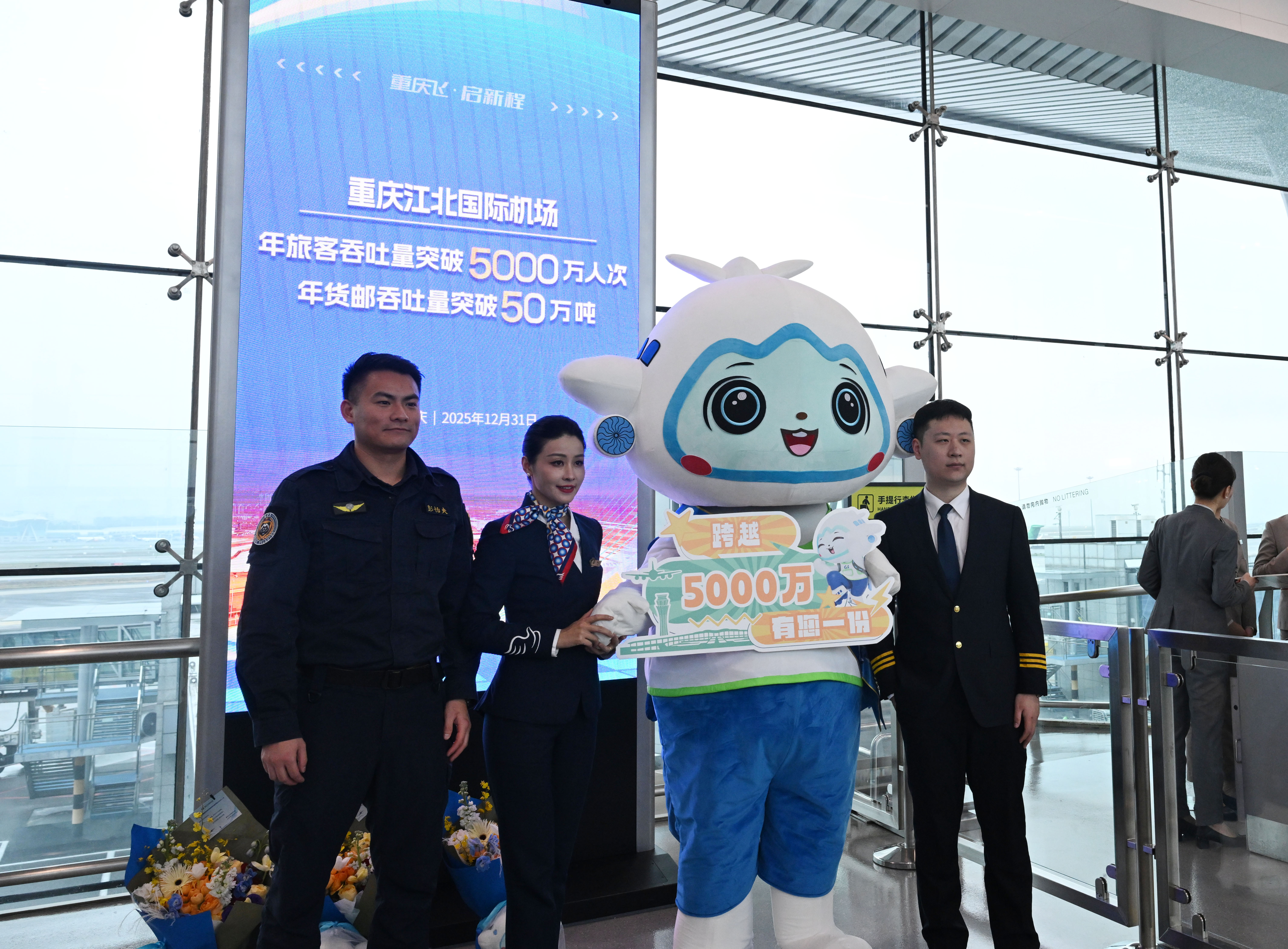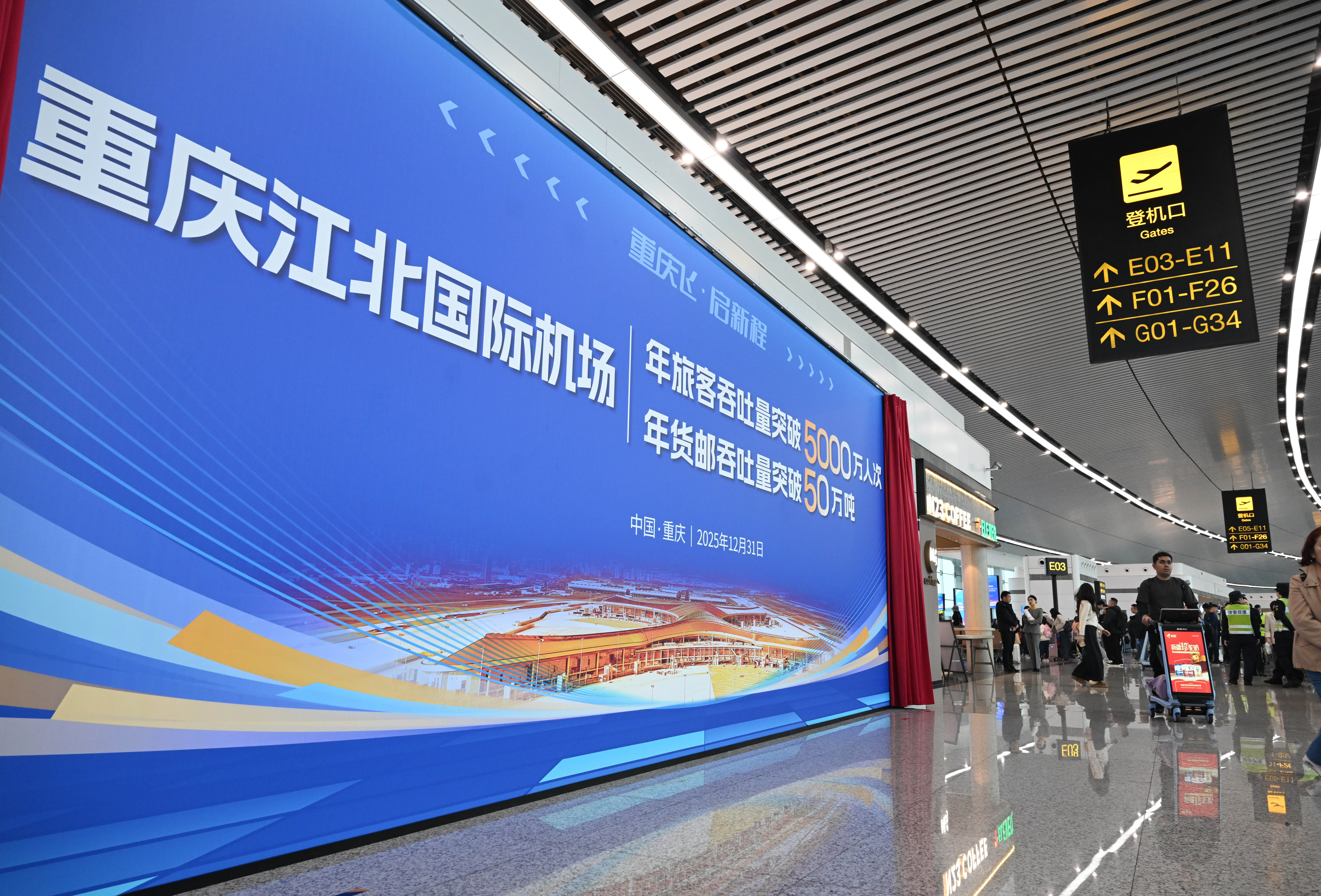 岁末之际,重庆高质量对外开放再传捷报。2025年12月31日,重庆江北国际机场迎来历史性时刻——年旅客吞吐量首次突破5000万人次,跻身全球“5000万级机场俱乐部”。