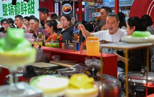 ▲10月17日,重庆国际博览中心,市民在火锅食材馆品尝甜饮品。记者 张锦辉 摄/视觉重庆