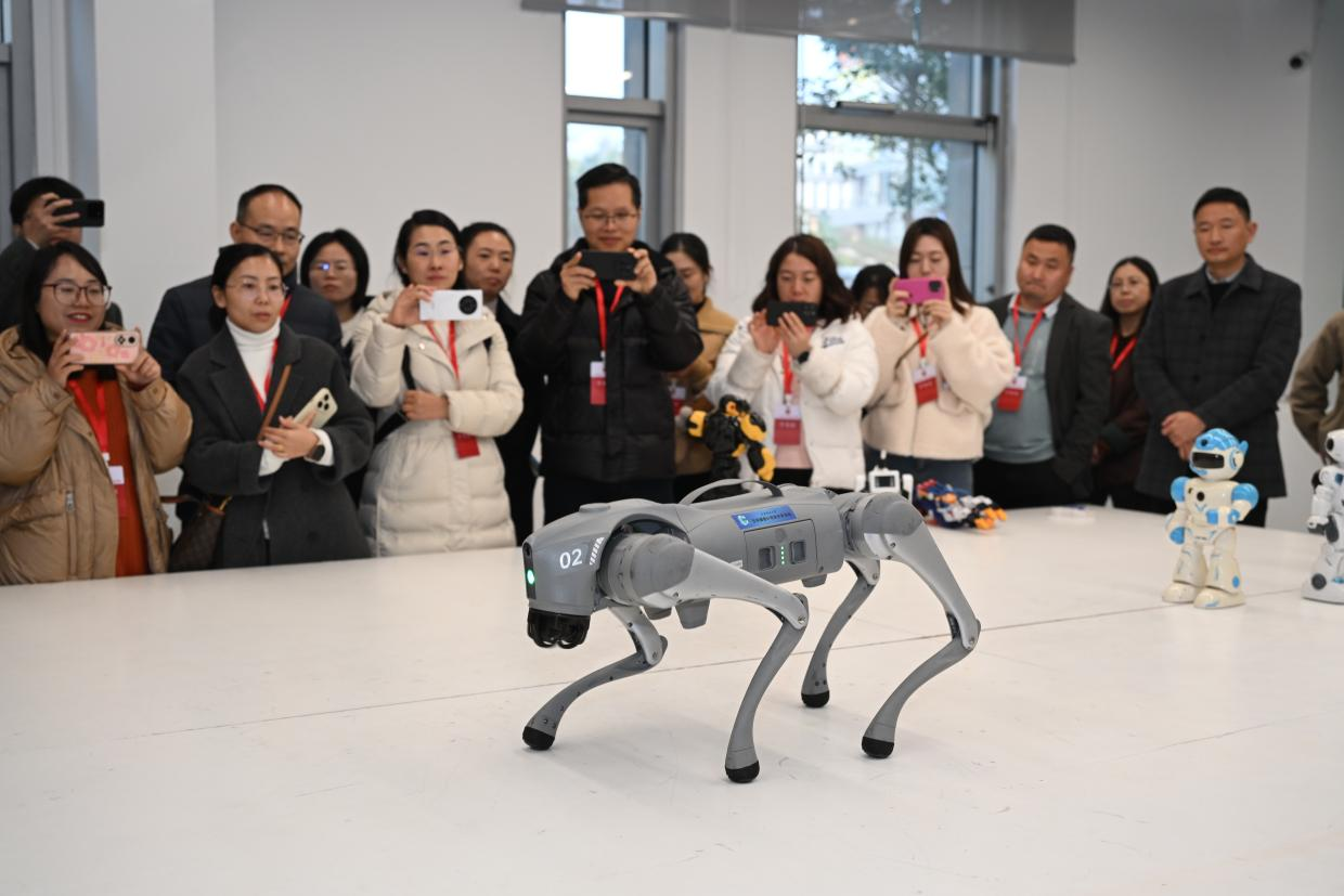 培训首日内容丰富。西南大学新媒体研究所所长涂涛以《人机共智:智慧教师AI素养的变奏与合鸣》为题,开启了理论第一课,深入剖析智能时代教师的角色转型。下午,教师们走进重庆巴蜀常春藤学校,观摩了一堂深度融合项目式学习、数字社会责任与智能工具应用的公开课;在重庆邮电大学空间通信研究院科普基地,“芯片探秘”、智能机器人等前沿展示,让教师们沉浸式感受了从技术原理到应用场景的完整链条。