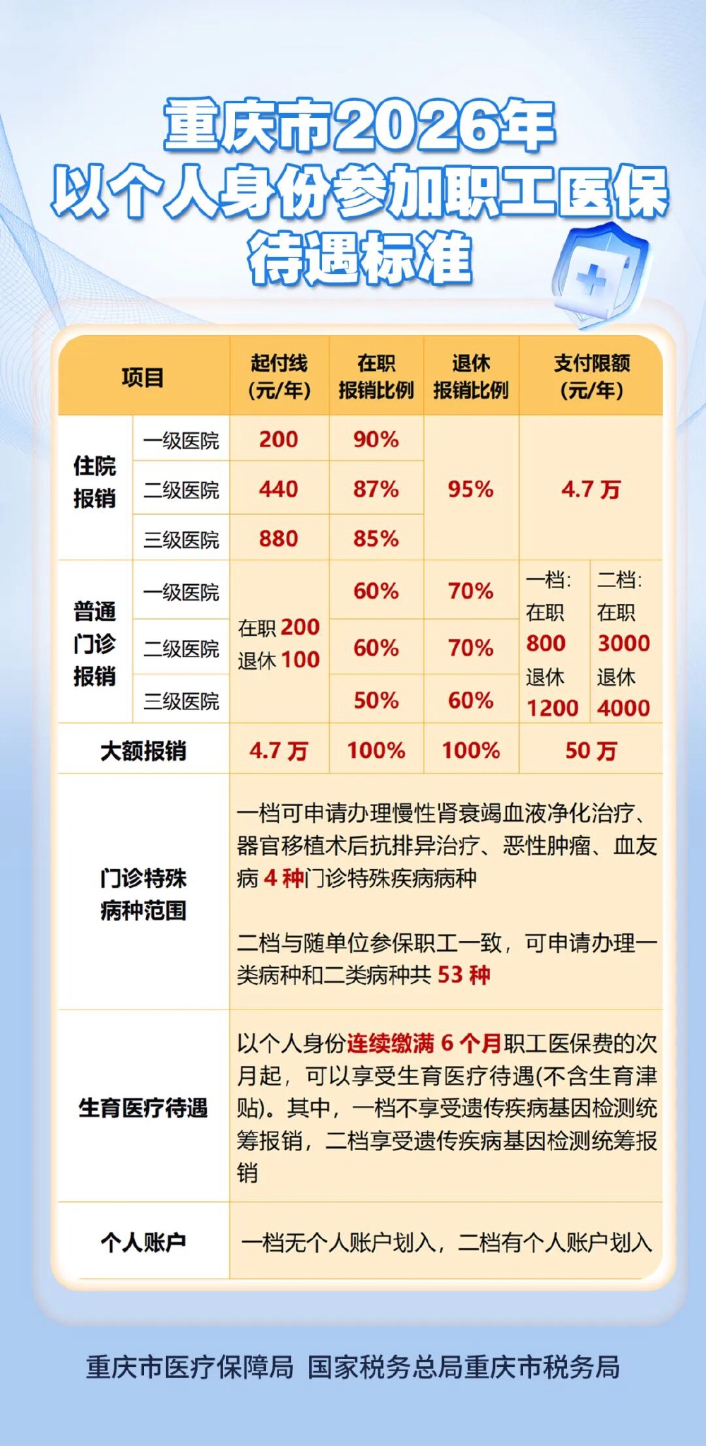 重庆市2026年以个人身份参加职工医保待遇标准出炉