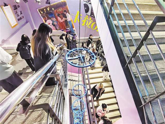 12月5日,重百大楼楼梯间变身“时光塔”,引来众多市民游客打卡。