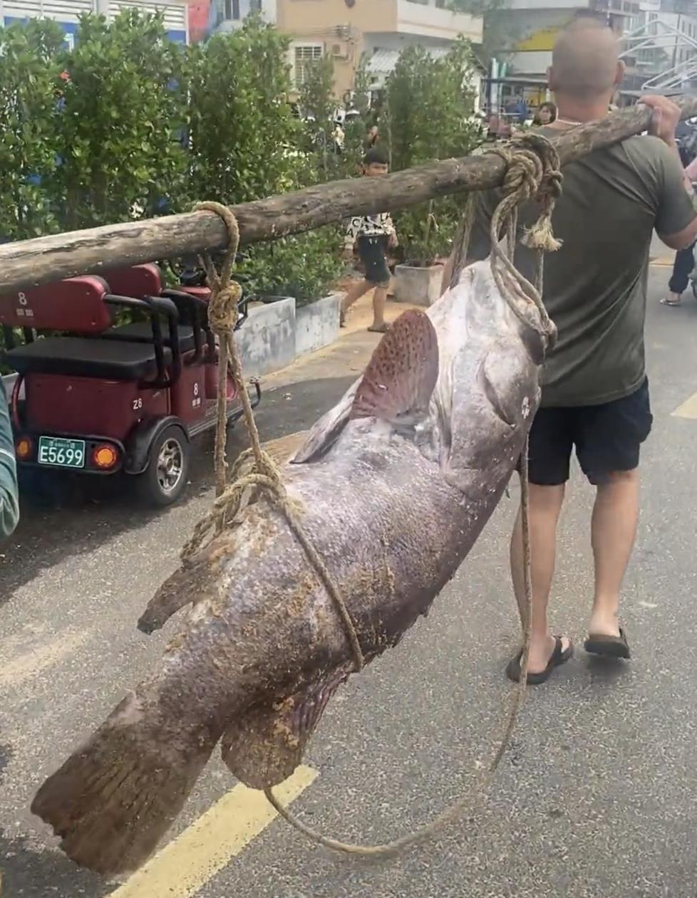 当地一位居民告诉极目新闻记者,这条鱼是龙趸石斑鱼,在当地并不常见,“这里的渔船也就七八米长,渔民只能在近岸捕捞作业,能捕获这么大的鱼的确罕见,我在这里长大,100多斤的鱼也只看到过一两次。”