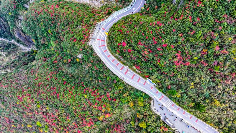▲11月22日,游客在重庆巫山神女景区游览(无人机照片)。 新华社记者王全超摄