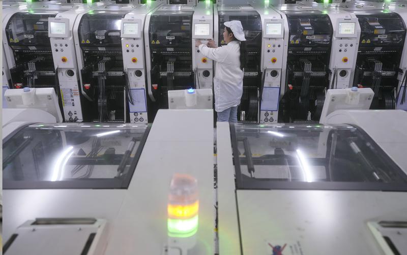▲12月2日,在重庆新视通智能科技有限公司SMT(表面组装技术)生产车间,工人在操作自动贴片机。新华社发(李晓果 摄)