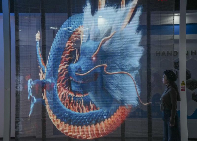 ▲12月2日,在重庆新视通智能科技有限公司展厅内,工作人员在介绍LED成品。新华社发(李晓果 摄)