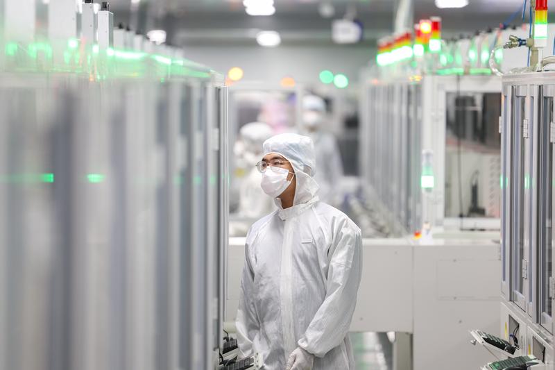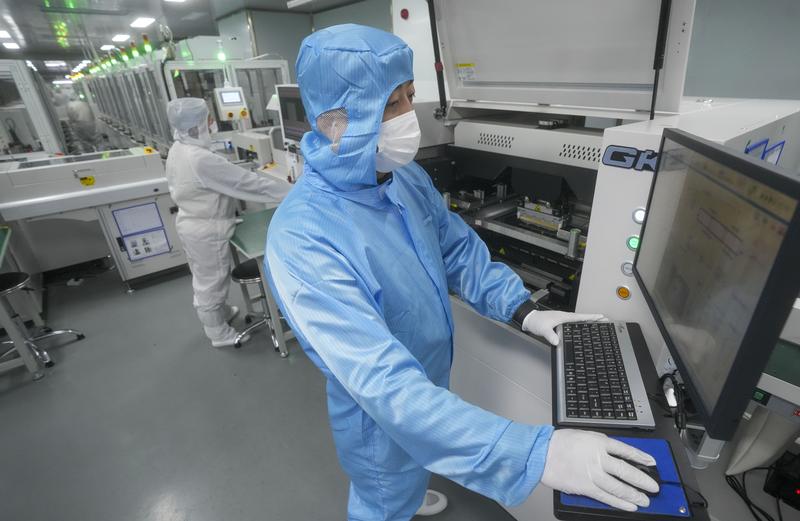 ▲12月2日,在重庆新视通智能科技有限公司COB生产车间,自动固晶机在固定发光晶圆。新华社记者 黄伟 摄