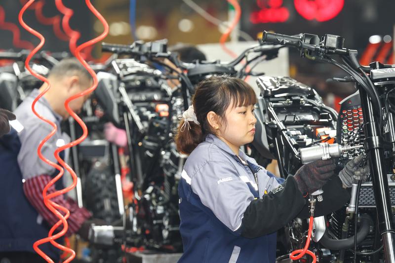 ▲12月2日,在重庆炙焱动力制造有限公司,工人在生产线上组装出口的摩托车。新华社记者 黄伟 摄