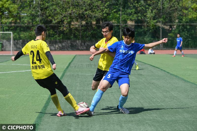 ▲2025年4月13日拍摄的中国科学技术大学“冠军杯”男子足球赛比赛现场。CICPHOTO/袁兵 摄