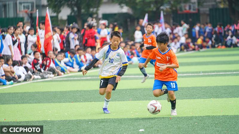 ▲2025年11月17日,贵州省黔东南苗族侗族自治州榕江县古州镇中心校学生在参加班级足球赛。CICPHOTO/周光胜 摄