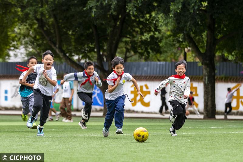 ▲2025年11月6日,贵州省从江县刚边壮族乡中心小学足球社团的学生在踢足球。CICPHOTO/罗京来 摄