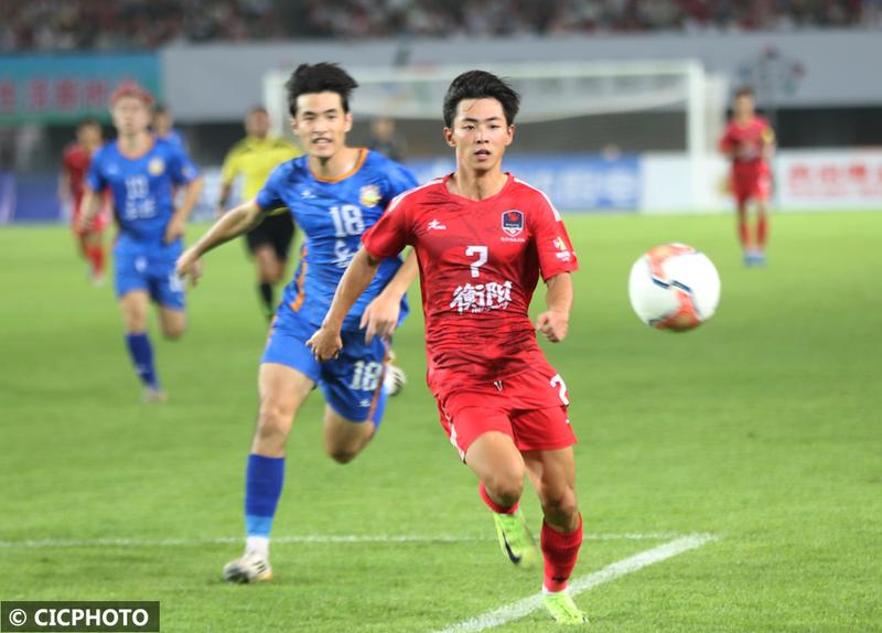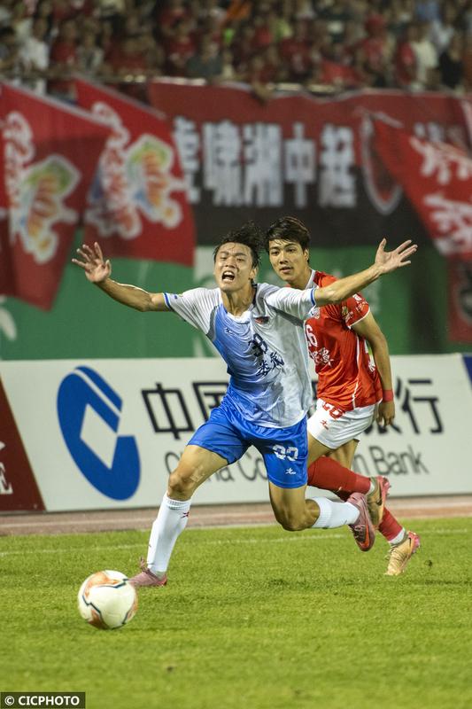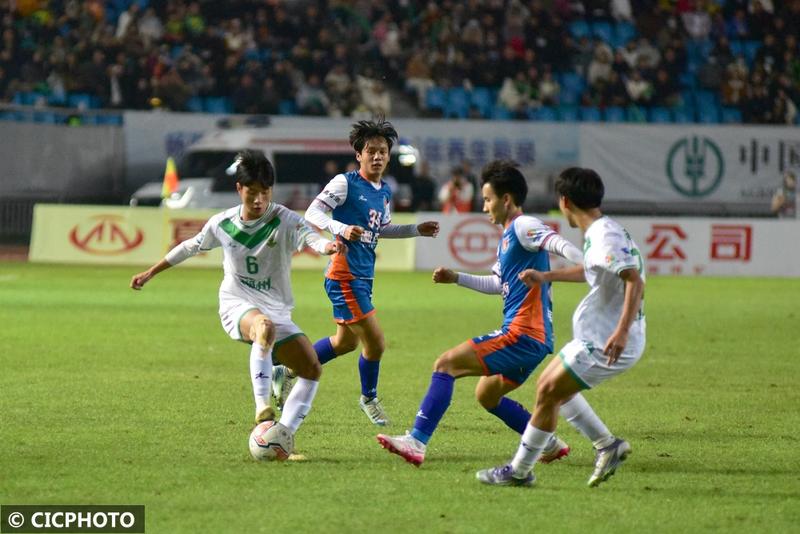 ▲2025年11月21日在湖南省郴州市体育中心拍摄的2025湖南省足球联赛比赛现场。CICPHOTO/贺茂峰 摄