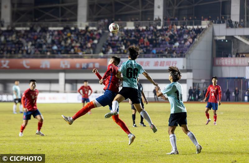 ▲2025年10月25日在重庆市南川区体育场拍摄的2025重庆城市足球超级联赛比赛现场。CICPHOTO/罗川 摄