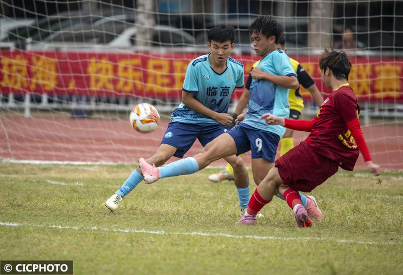 ▲2025年11月29日在海南省琼海市嘉积中学拍摄的2025年海南省城市足球联赛比赛现场。CICPHOTO/蒙钟德 摄