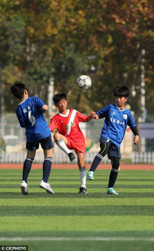 ▲2025年11月16日在安徽省亳州市蒙城县逍遥路小学拍摄的该县中小学生足球联赛比赛现场。CICPHOTO/胡卫国 摄