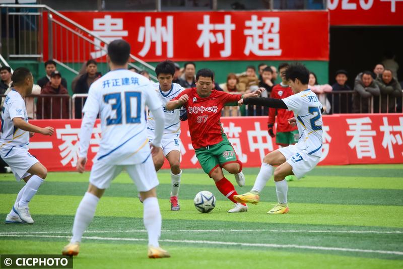 ▲2025年2月1日在贵州省黔东南苗族侗族自治州榕江县“村超”球场拍摄的比赛现场。CICPHOTO/潘邵平 摄