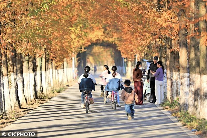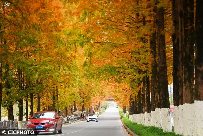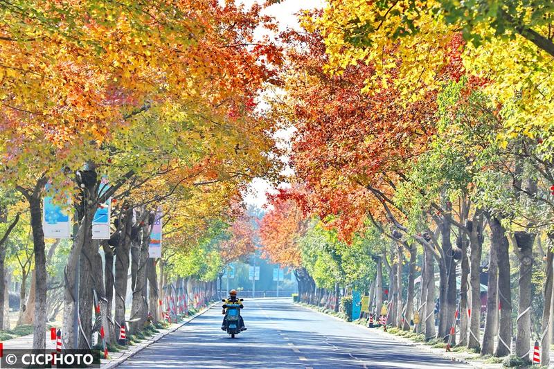 近日,多地城乡道路两旁叶色斑斓,美景如画。