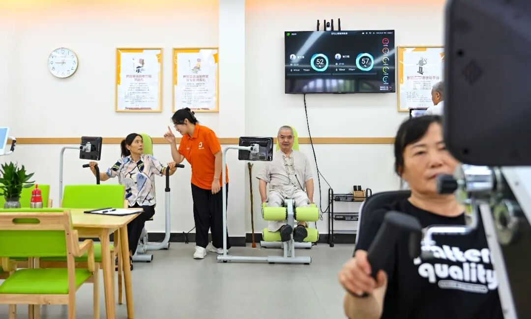 ▲8月12日,位于两江新区礼嘉街道文化活动中心的“长者运动健康之家”,老人们在工作人员指导下使用健身器械。记者 张锦辉 摄/视觉重庆