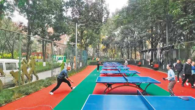 九龙坡区文旅委工作人员介绍,从确定方案、施工改造到建成移交,他们和其他部门联手行动,逐一记录附近居民的诉求,并与设计团队反复讨论方案,最终完成了乒乓球场的提档升级。