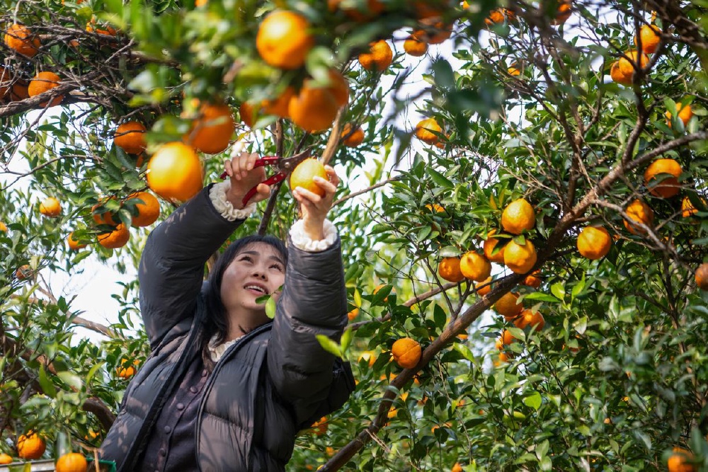 ▲1月15日,果农在采摘柑橘。新华社记者 唐奕 摄