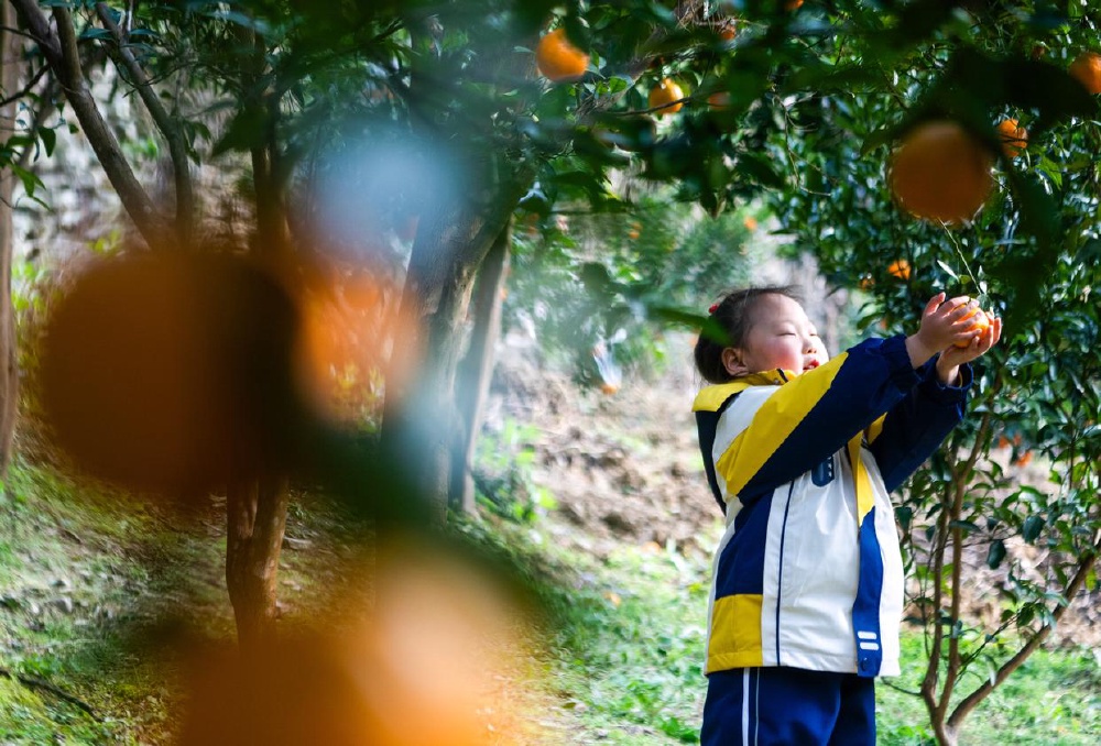 近日,重庆市黔江区阿蓬江沿岸数千亩柑橘林迎来收获季,当地通过举办采摘体验、线上直播等活动,拓宽柑橘销售渠道,推动柑橘出村进城,有效促进农民增收和乡村产业振兴。