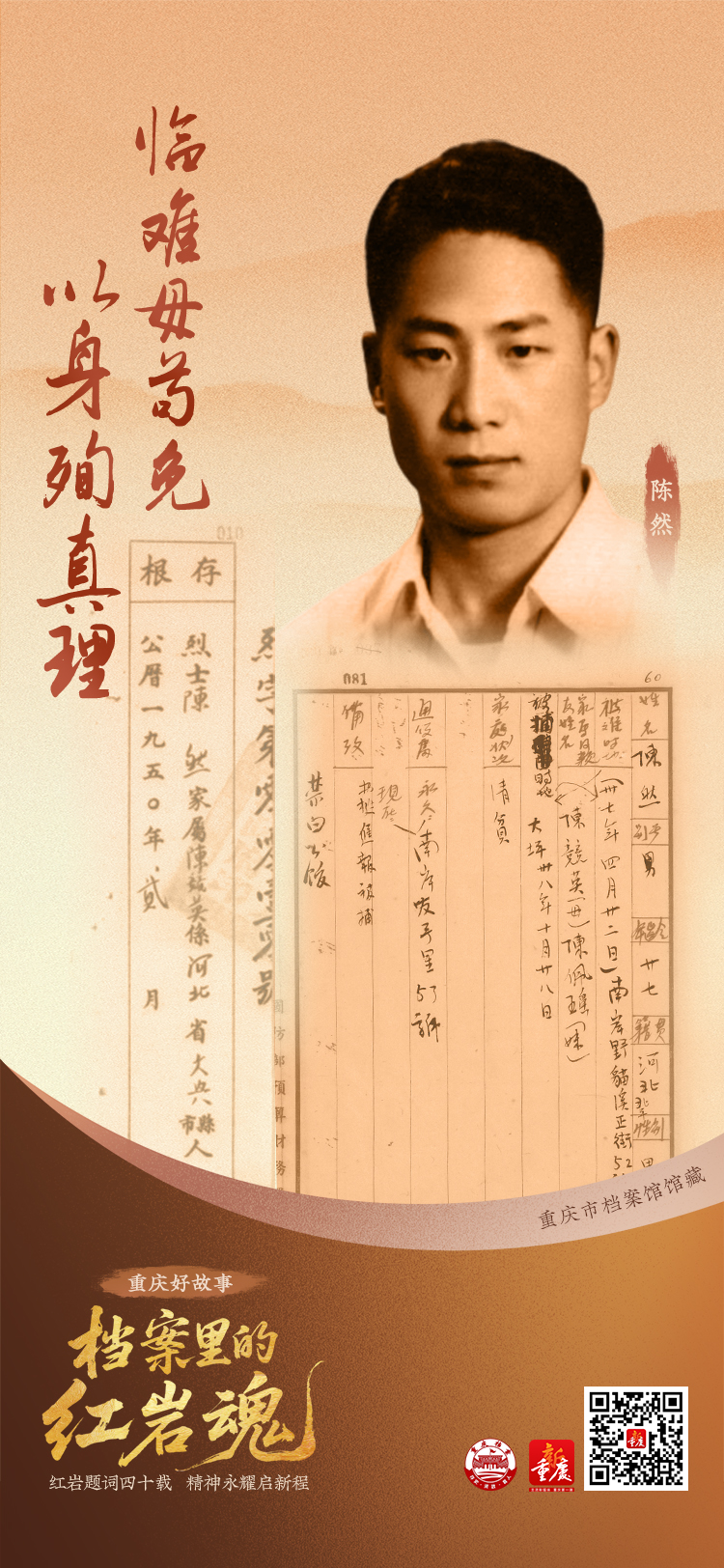 由新重庆-重庆日报携手重庆市档案馆联合推出的《重庆好故事|档案里的红岩魂》专栏,正是这样一座跨越历史的桥梁,带领我们走进珍贵记忆,聆听血与火的故事,感受何为忠诚与担当;同时更激励我们,将红岩精神融入新时代的奋进之路,以英烈之志铸就当下之行,以信仰之光点亮未来征途。