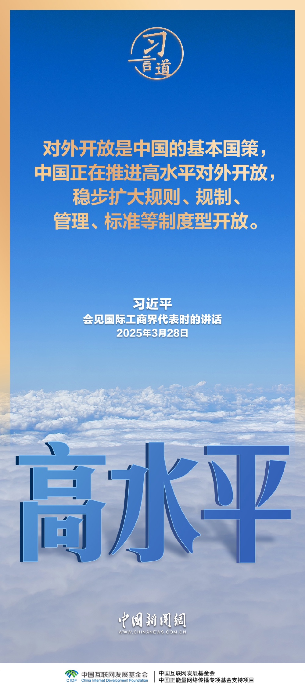 开放是人类文明进步的重要动力,是世界繁荣发展的必由之路。习近平总书记多次就坚定不移推进高水平对外开放发表重要论述,强调“中国对外开放的大门不会关闭,只会越开越大”。