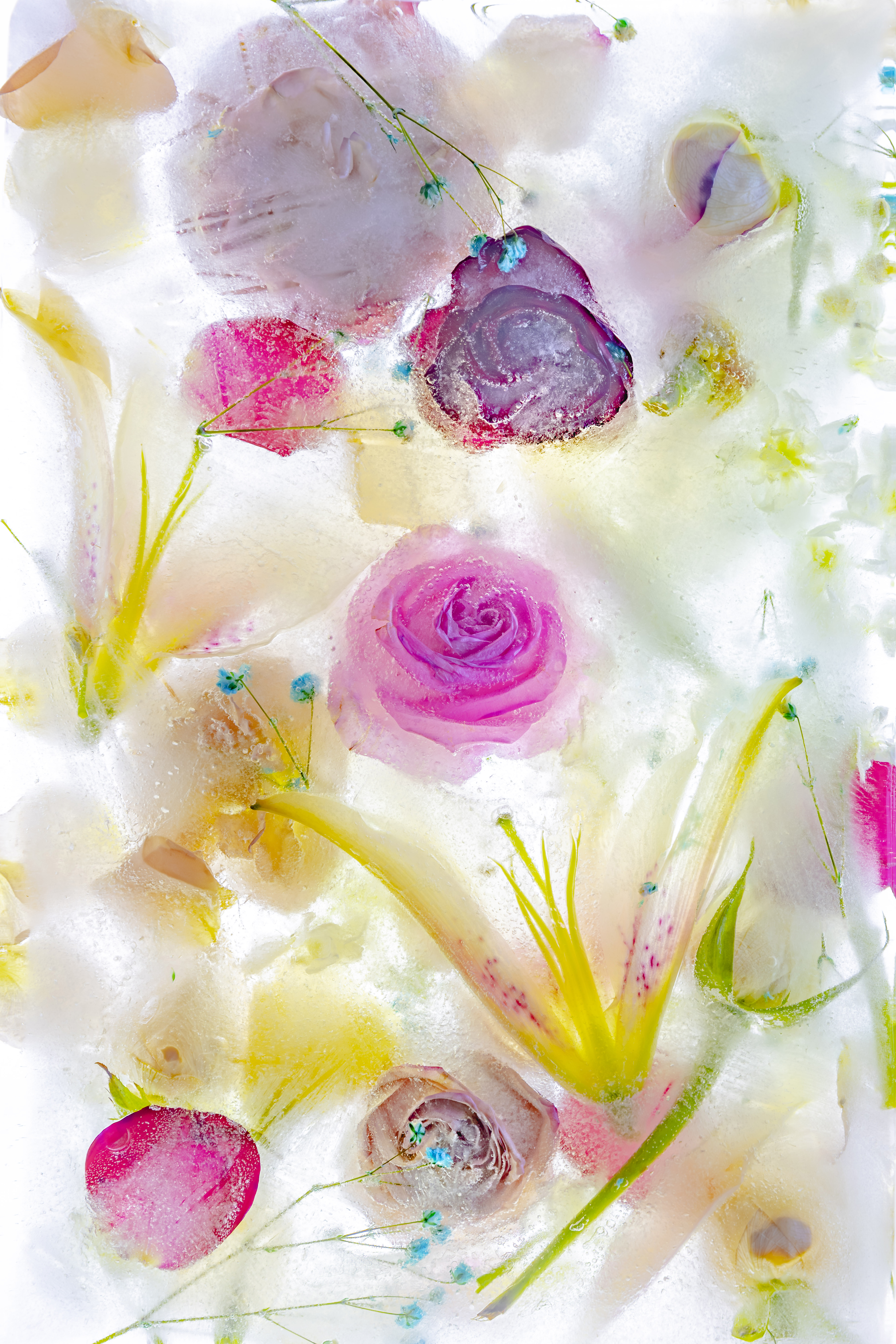 在刘纪湄的镜头下,鲜花虽然失去了生命,然而在冰冻的环境中,作者巧妙地运用光影技术和特殊材料,展现出美丽动人的姿态,无论是玫瑰的娇艳、百合的清新,还是雏菊的朴实,都在冰块的映衬下显得更加动人。