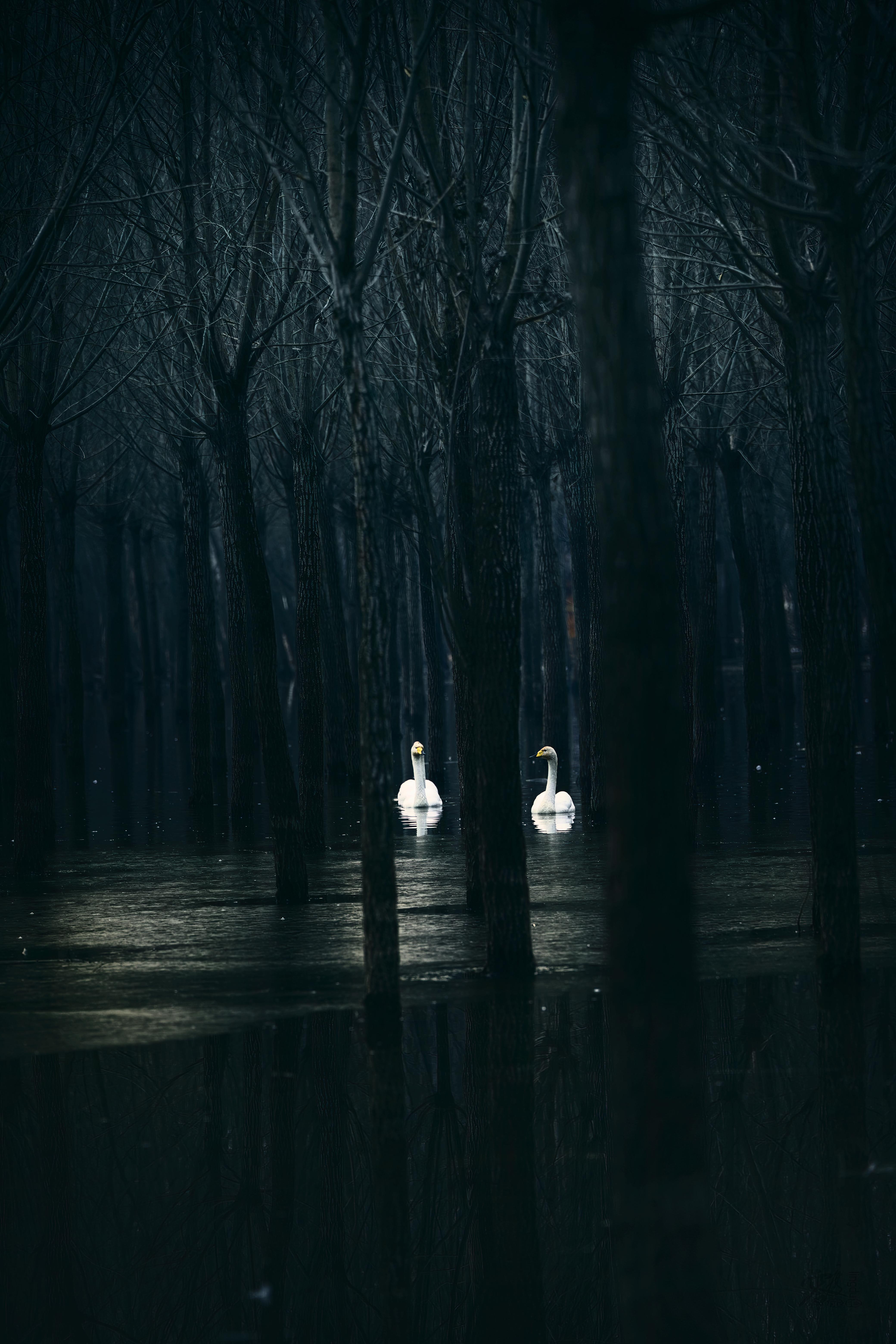 暗调树木、高调天鹅、中点构图,极简主张,作品的意向、品味、情境,构成了这幅画意摄影的整体风格,展现了动物与自然的和谐之美。