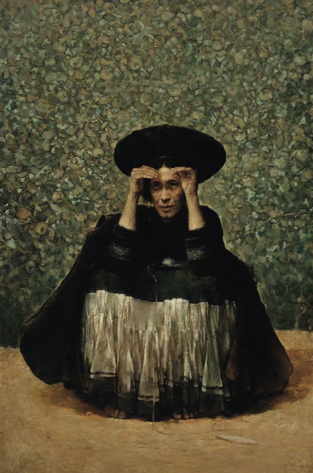 这件作品用古典主义手法描绘了一位劳作间隙的妇女形象。厚重的笔触、简约的构图以及凝重的色彩,将日常生活题材进行了精神性的转化,让观者从中感受到一种庄严感和静谧的诗意。